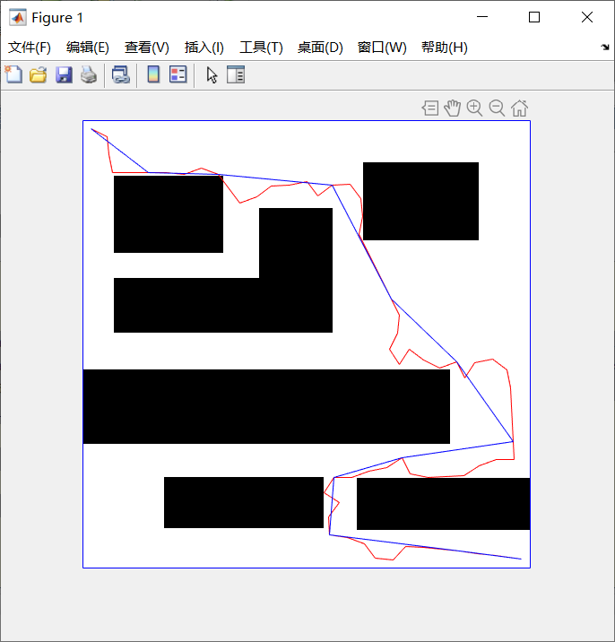 line(path0(:,2),path0(:,1),'Color','r'); %红线表示改进前