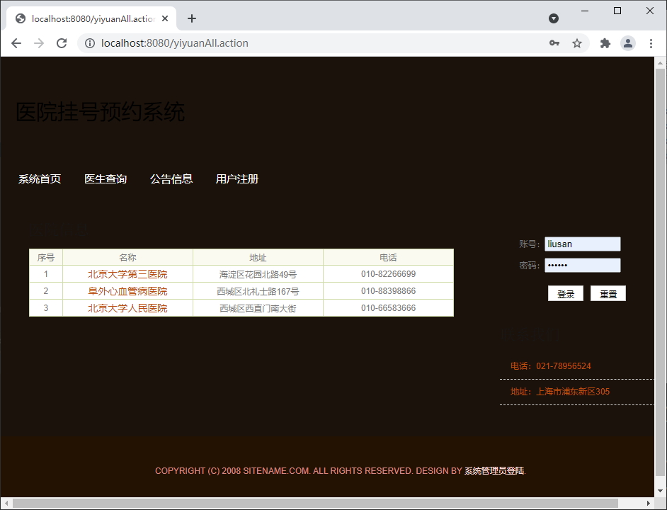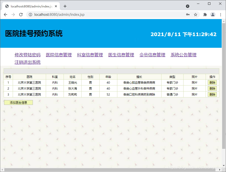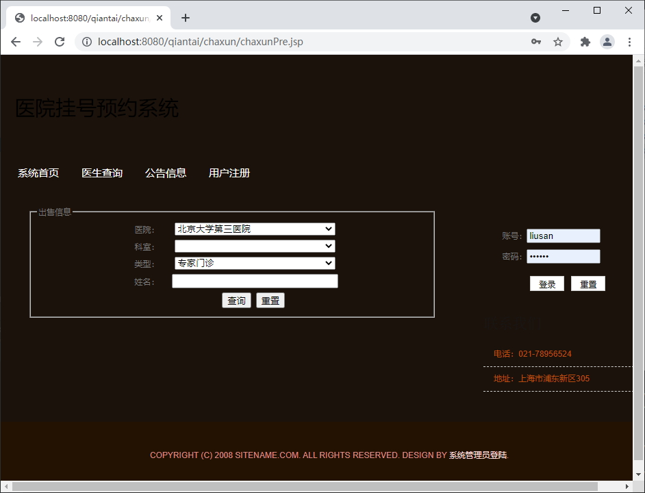 Java+SSH+Jsp+Mysql医院挂号系统