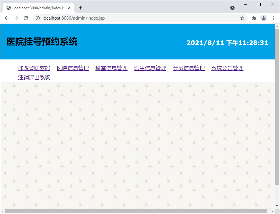 后台基本功能包括:系统管理员登录、医院管理、科室管理、公告管理、退出系统等。