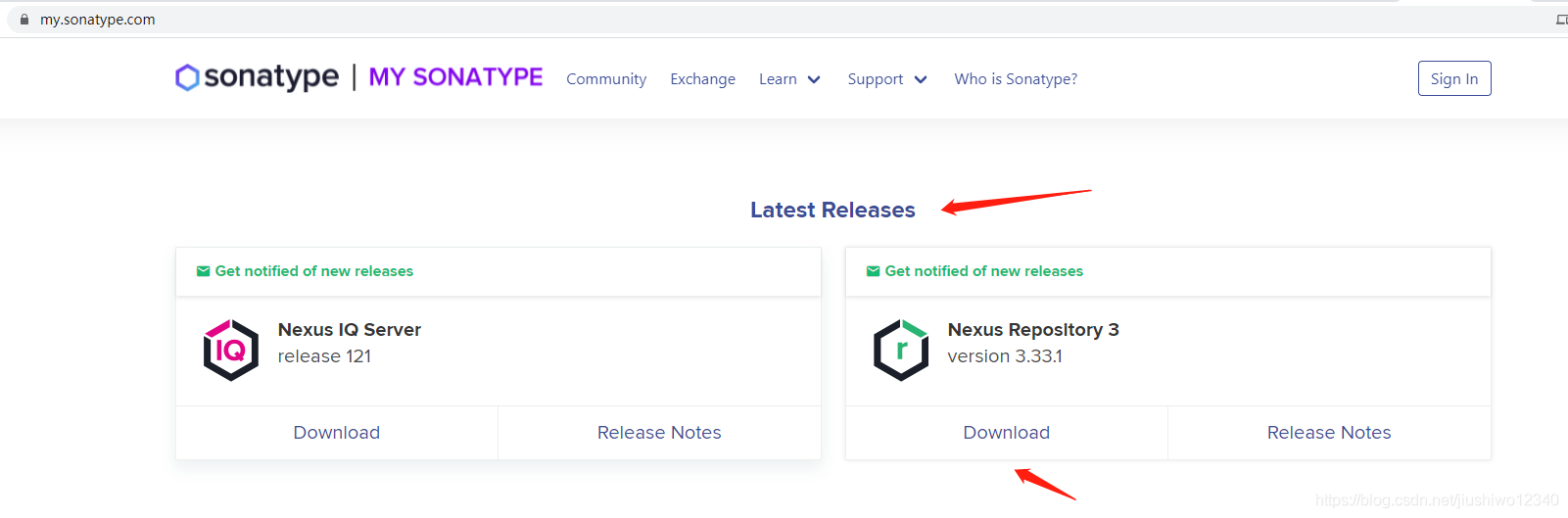 nexus是用来管理maven仓库的软件 ,下载地址 https://my.sonatype.com/