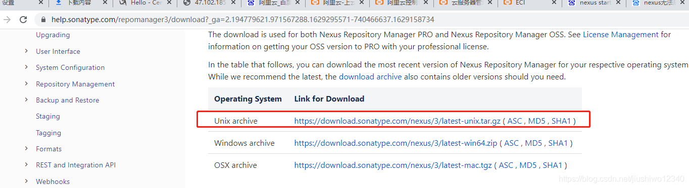 注意下载位置 在 Latest Releases下 ,download后 Unix 才是安装在服务器上的版本