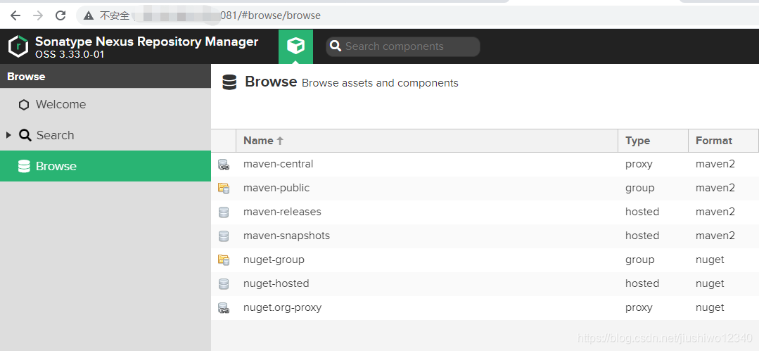 // 通过域名访问 nexus 浏览器输入 ip:8081