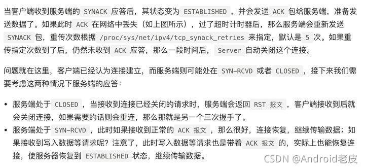第二层:熟是熟了,但有些根本就是错的,比如TCP第三次握手失败了,网上基本是重试+ RST的说法: