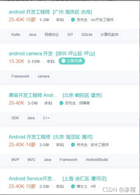 想必大家都知道 Android 行业没有之前那么的火热了,因为初级市场的高度饱和,导致了一些 Android 初级开发者们很难找到工作,从中也就劝退了一波人。但是中高级市场的Android开发还是比较吃香,单从市场招聘的薪资角度来看还是不错的。
