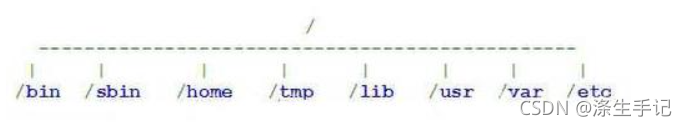 linux的目录结构为树状结构,最顶级的目录为根目录 /。类似如下: