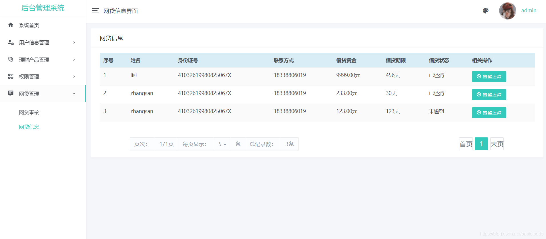 该系统主要解决了理财中的一些问题,包含功能:权限管理,用户信息管理,理财产品管理等内容。