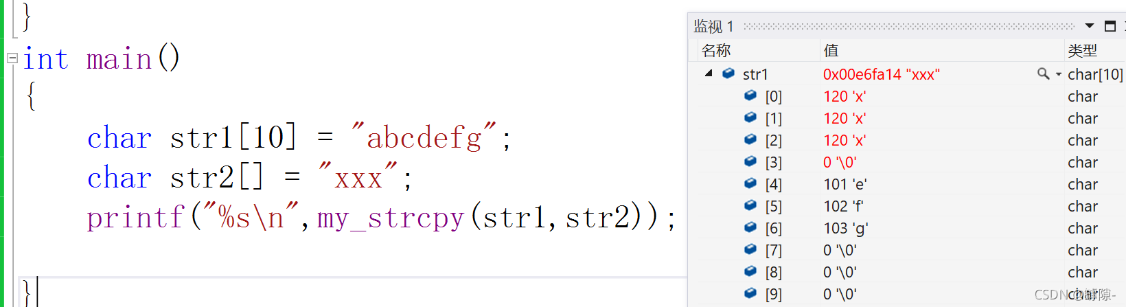 ②因为会拷贝入\0,所以打印时显示出类似覆盖的效果,但实际不是覆盖