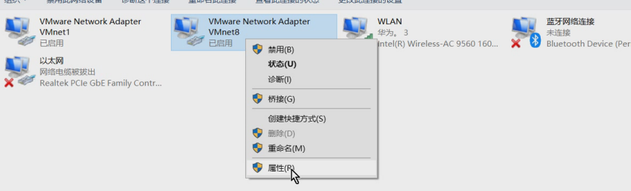 选择VMnet8,右击选属性