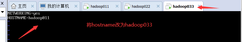 ③在hadoop02、03输入命令vi /etc/sysconfig/network,将hostname改成对应的hadoop02、03.