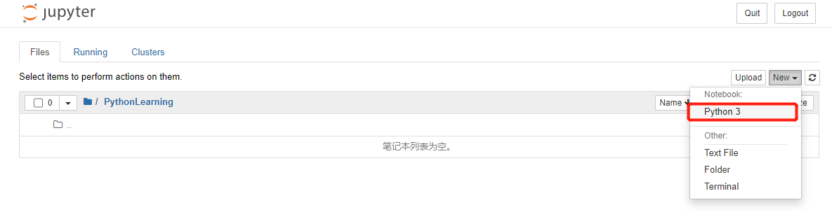 我们在Jupyter notebook里面New一个Python3就可以开始愉快的练习了。