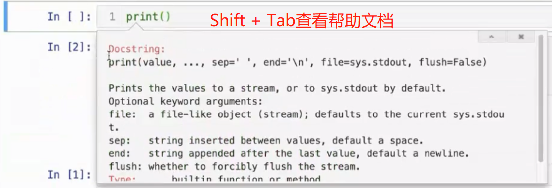 上图例子中如果想要最后两行的结果都输出,需要使用下面即将介绍的print函数。