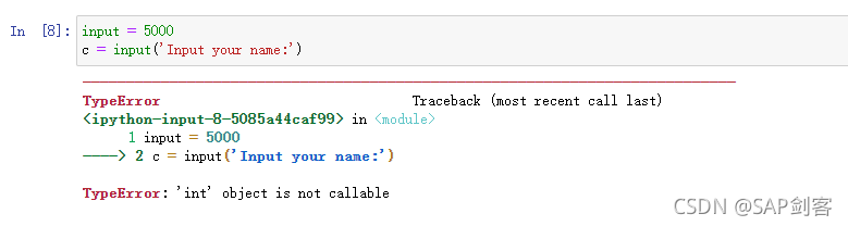 In[]里面的星号(*)表示代码正在运行中,可以点击打断按钮停止运行,同时会给出报错信息。