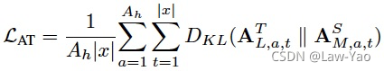 - 若选择的Self-attention layer为LSRA,除了在multi-head self-attention分支迁移attention score与value relation;在CNN分支需要迁移feature map的信息,这里主要计算AT loss: