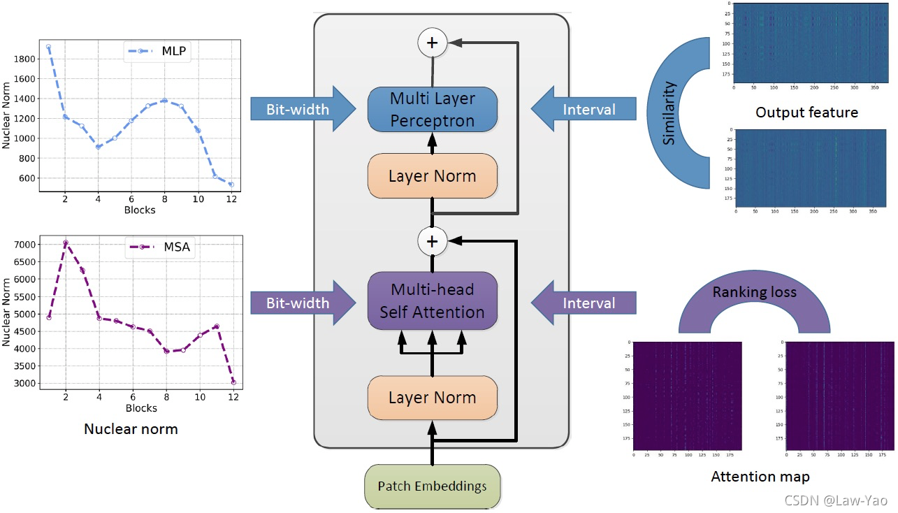 - Ranking-aware Quantization: 在相似度Loss基础之上,叠加Attention map的Ranking loss作为约束,以准确感知不同Attention map的重要性,确保Self-attention量化的有效性;