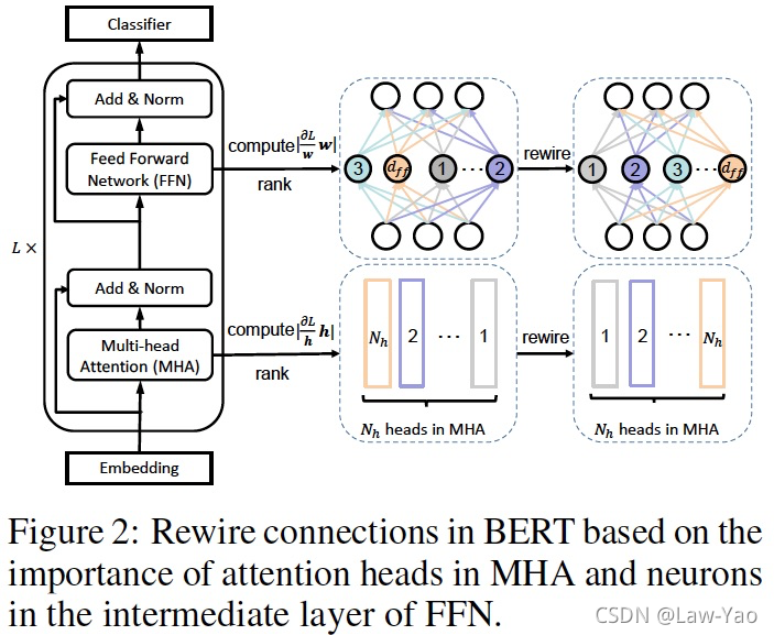 - 第一步:基于Neuron与Attention head的重要性,执行参数重排(Weight Re-wiring):