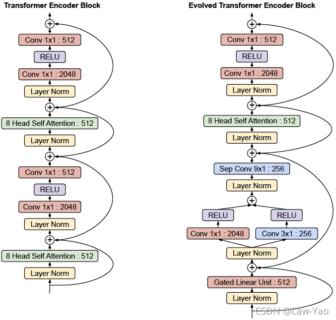针对序列生成任务,基于NAS搜索获得的Transformer结构: