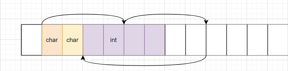 ②b作为第二个成员要考虑偏移量的问题。b的类型int 的大小4<8,所以对齐数为4。对齐在最后未被利用的空间里找一块地址,其偏移量为对齐数的整数倍。