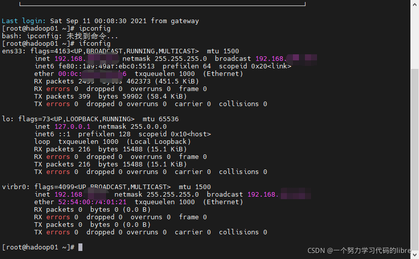 再输入ifconfig,则可以看到自己刚刚在上面所设置的ip地址。