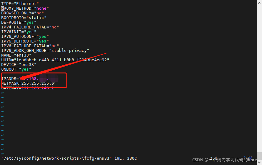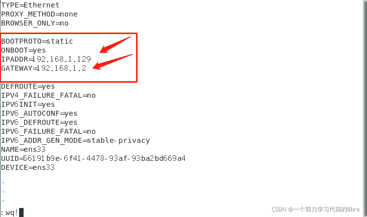 vim /etc/sysconfig/network-scripts/ifcfg-ens33