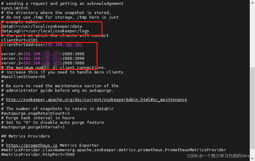 进入到zoo.cfg文件编辑中,修改以下图所示: