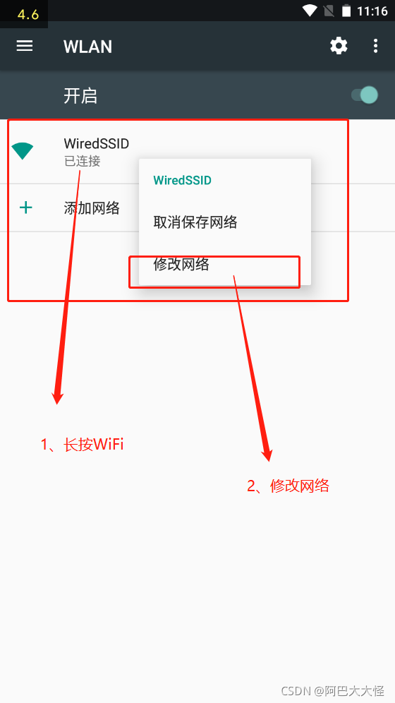 4、打开模拟器-设置-WiFi-长按-修改网络