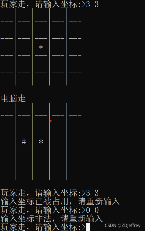 DisplayBoard函数同样是通过双重for循环打印出二维数组以及棋盘的分界线。