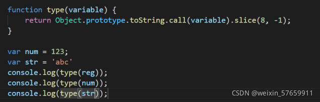 3 Object.prototype.toString:tostring是object原型对象上的一个方法,该方法默认返回其调用者的具体类型,通常封装一个函数,通过传参形式判断调用函数的类型,返回的类型格式为[Object,xxx],xxx是我们要获取的具体的数据类型,可以通过分割字符串slice(8,-1)的方法获取最终我们要获取的数据类型。