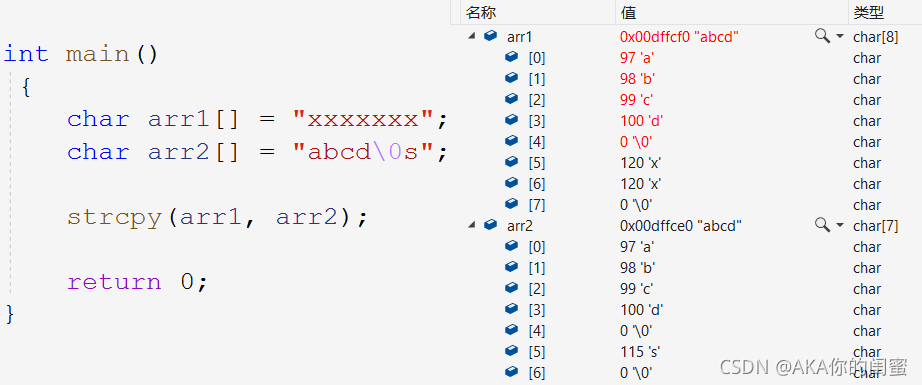 strcpy将源字符串的内容(包括\0)依次拷贝到目标空间。