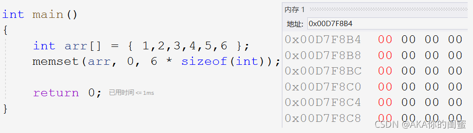 int ret = my_memcmp(arr1, arr2, 1 * sizeof(int));