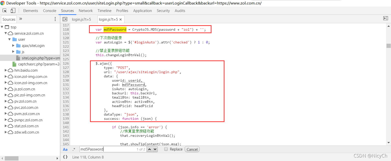 6、搜索框输入md5Password搜索,可以发现就在上方定义的md5Password,然后它是由CryptoJS这个加密库中的MD5算法加密的,那么参数是什么呢,我们不妨在这里打一个断点调试看看