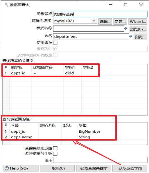 任务:封装一个子转换能够通过dept_id求出dept_name,然后使用另外一个转换调用此子转换,求出数据库staff表id=3的员工的姓名,年龄,部门id,部门姓名,并输出到控制台。
