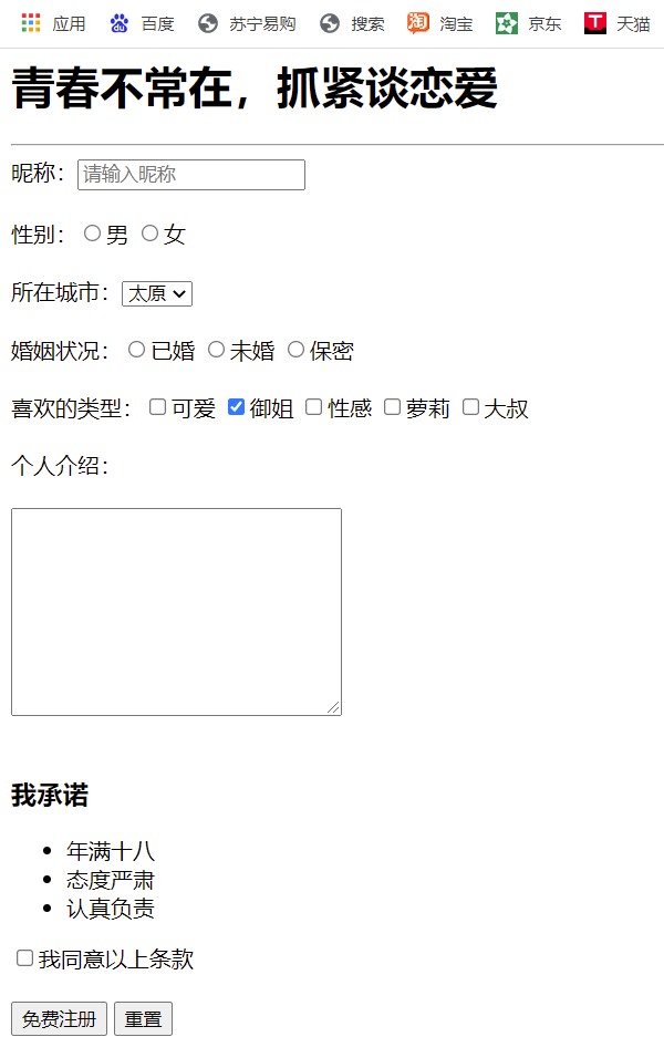 婚姻状况:<input type="radio" name="hunyin">已婚