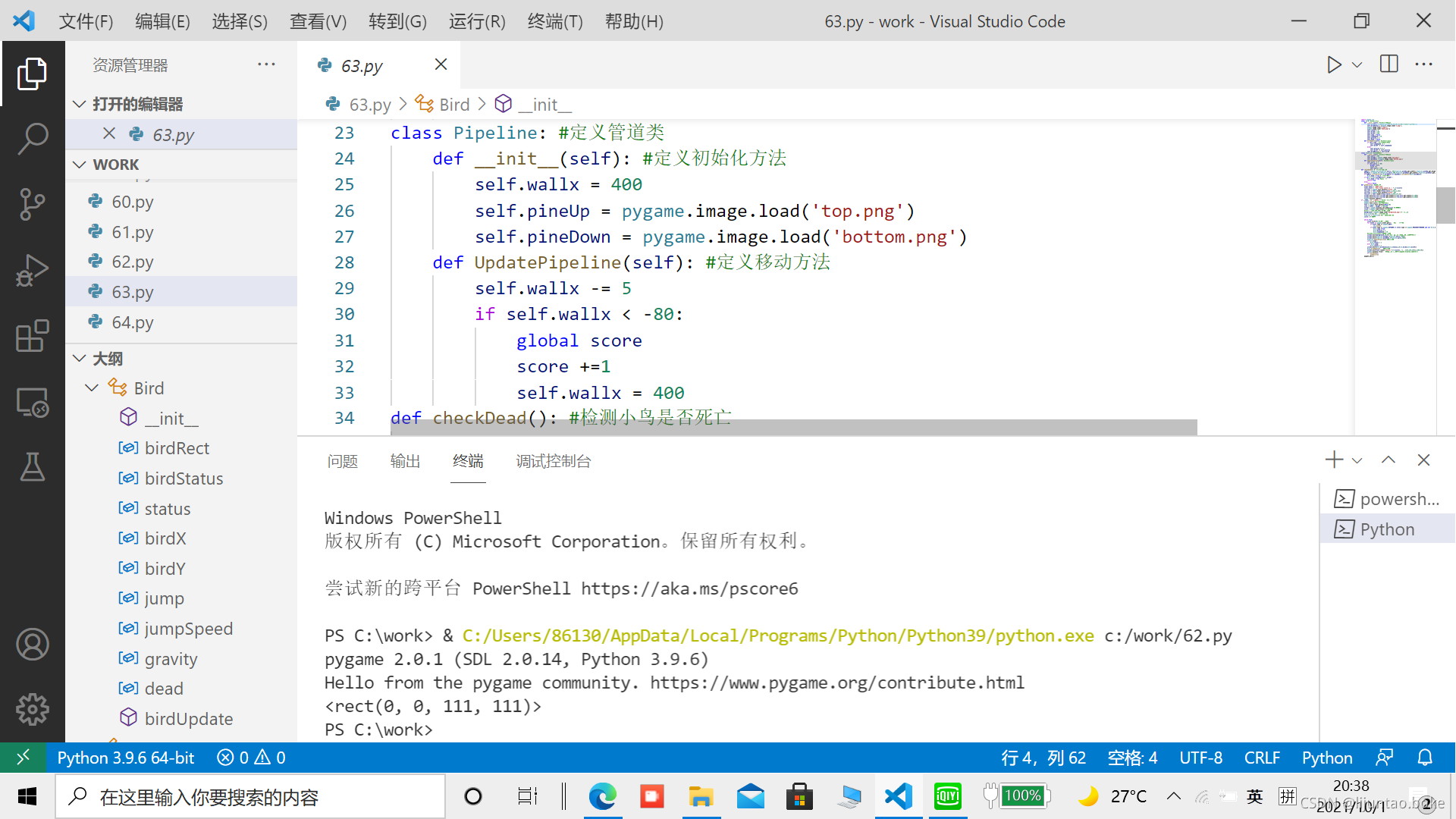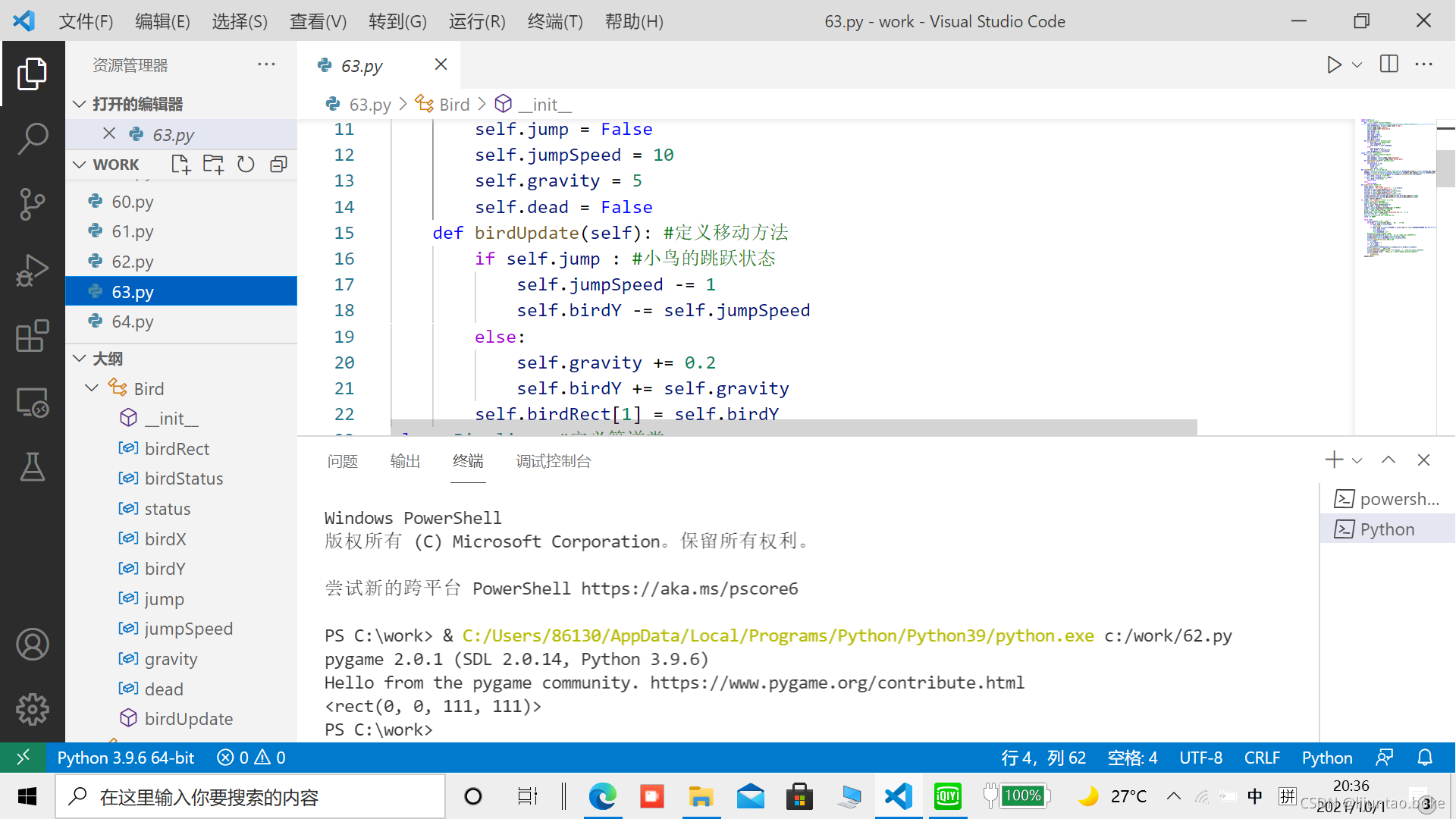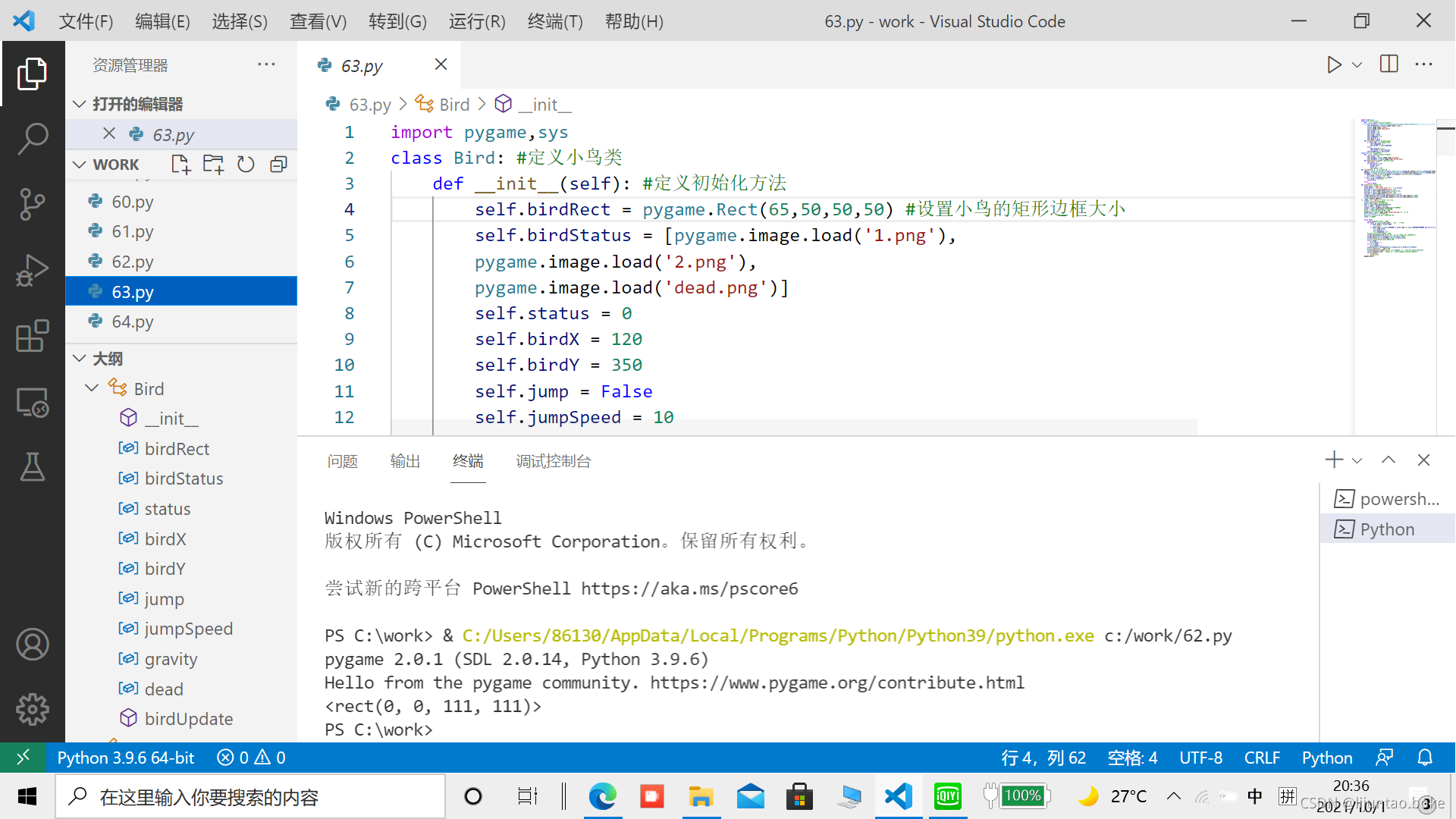 self.birdRect = pygame.Rect(65,50,50,50) #设置小鸟的矩形边框大小