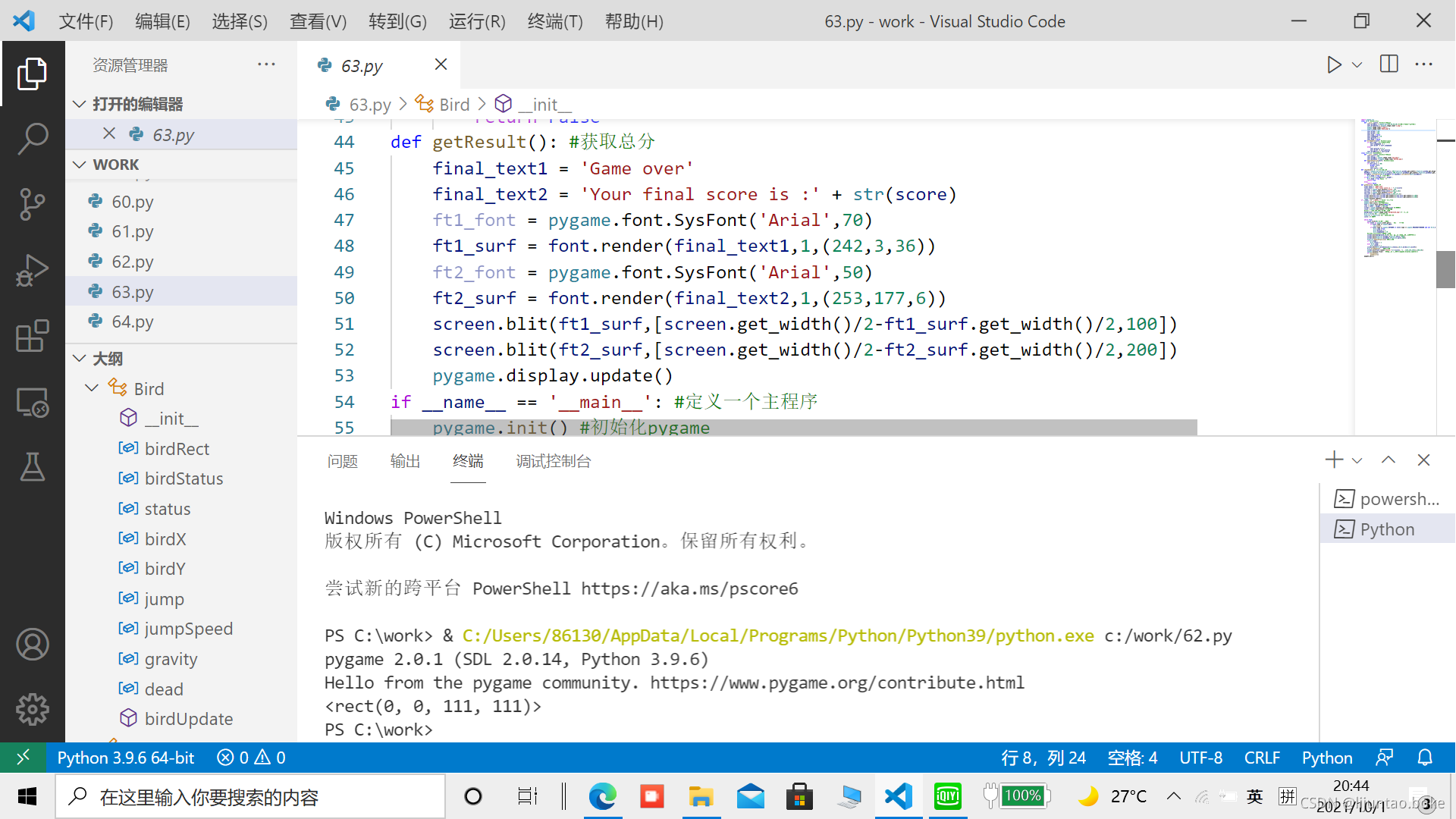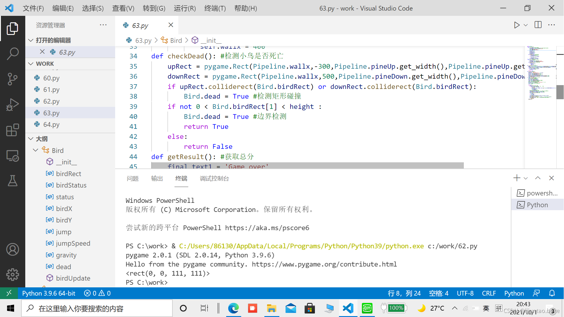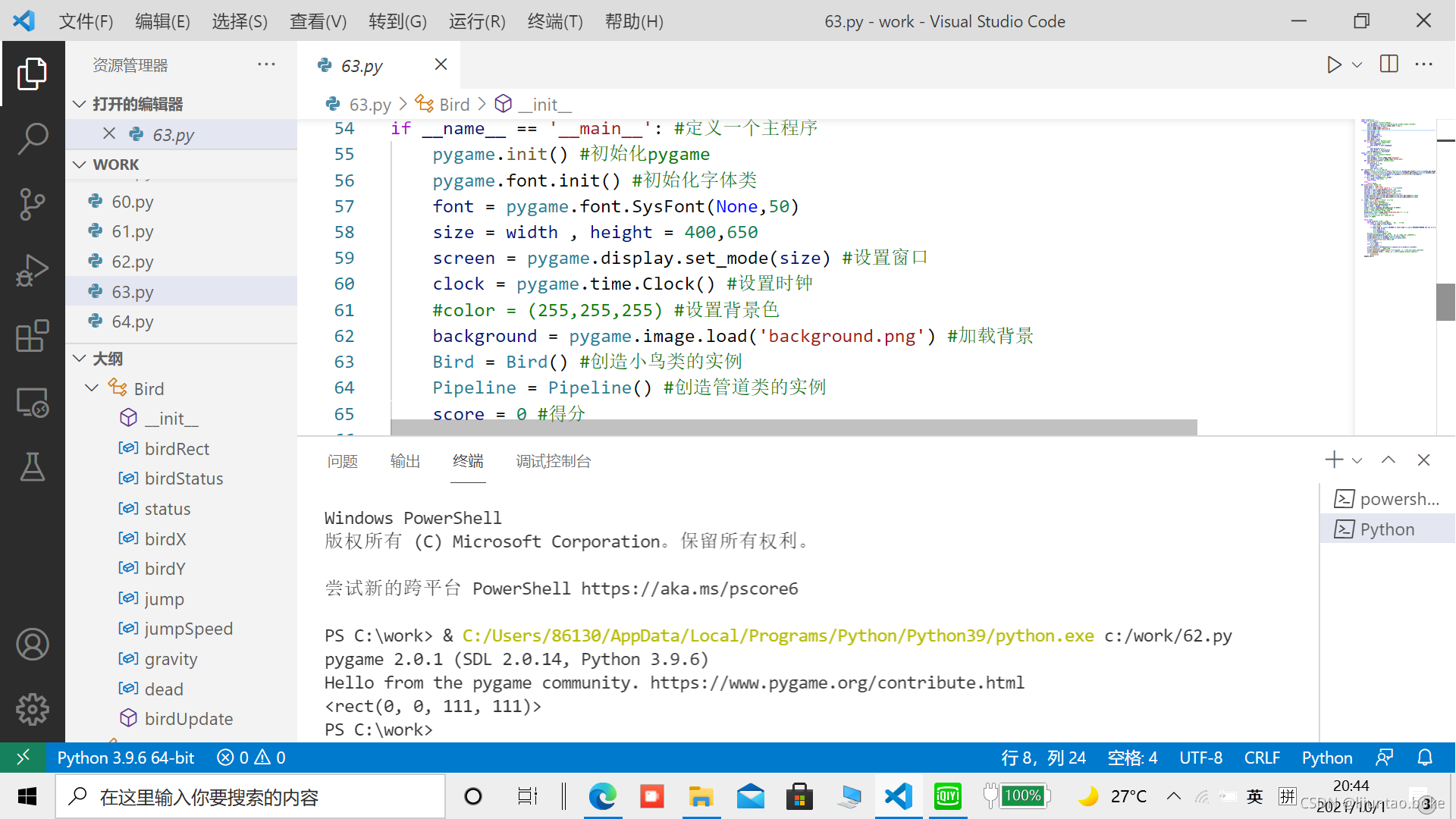 self.birdRect = pygame.Rect(65,50,50,50) #设置小鸟的矩形边框大小
