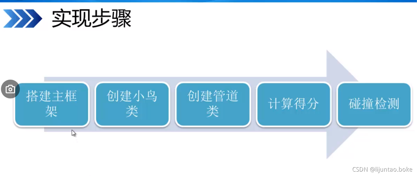 小鸟只需要上下移动,而管道就固定的向左以固定的速度移动,移到游戏屏幕左侧边缘消失,再从游戏屏幕右侧即可;