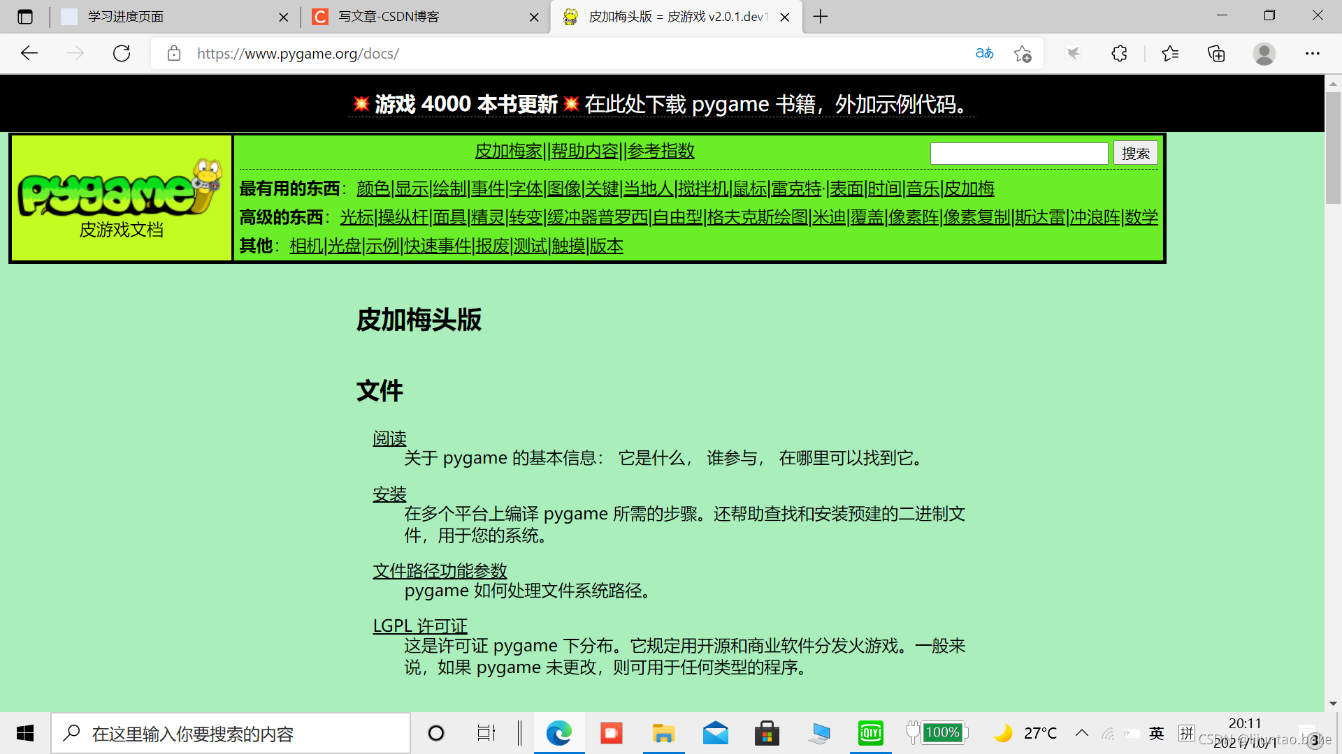 如果想要高速下载可以上网找国内支持下载的链接再用pip install pygame -i (链接);(推荐清华大学的链接)