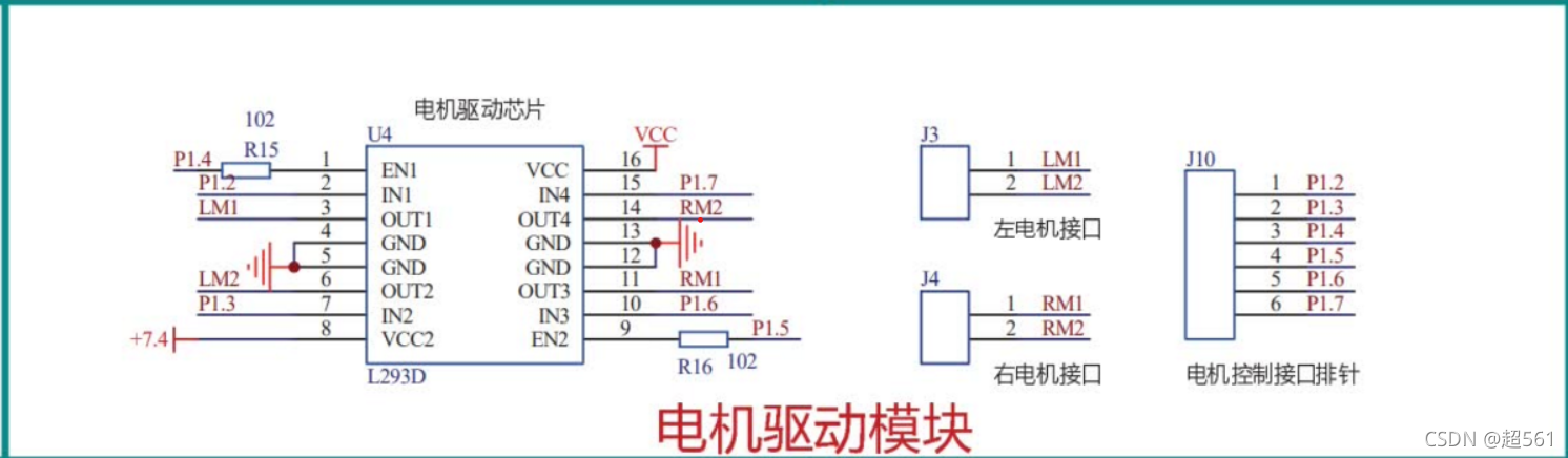 首先了解电机驱动模块,为双H桥驱动;p1^2,p1^3,p1^4控制小车左电机p1^5,p1^6,P1^7控制小车右电机;将单片机上的P1^2~P1^6和PCB板上的P1^2~P1^6用杜邦线分别对应连接好,然后进行对电机驱动IO口定义;用宏定义对小车电机的使能,^正转,反转进行定义,方便以后写main函数,下面为QXA51.h函数