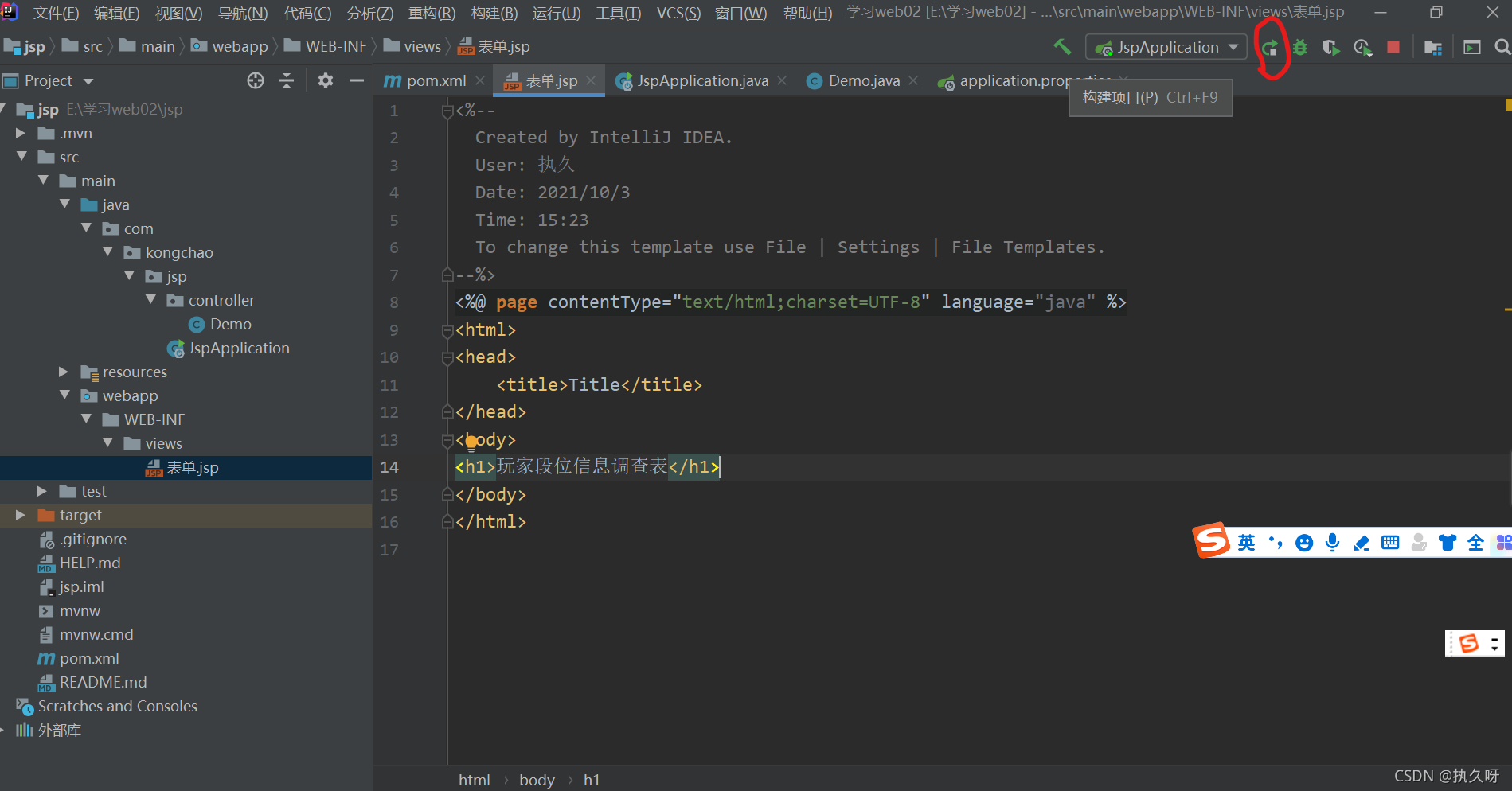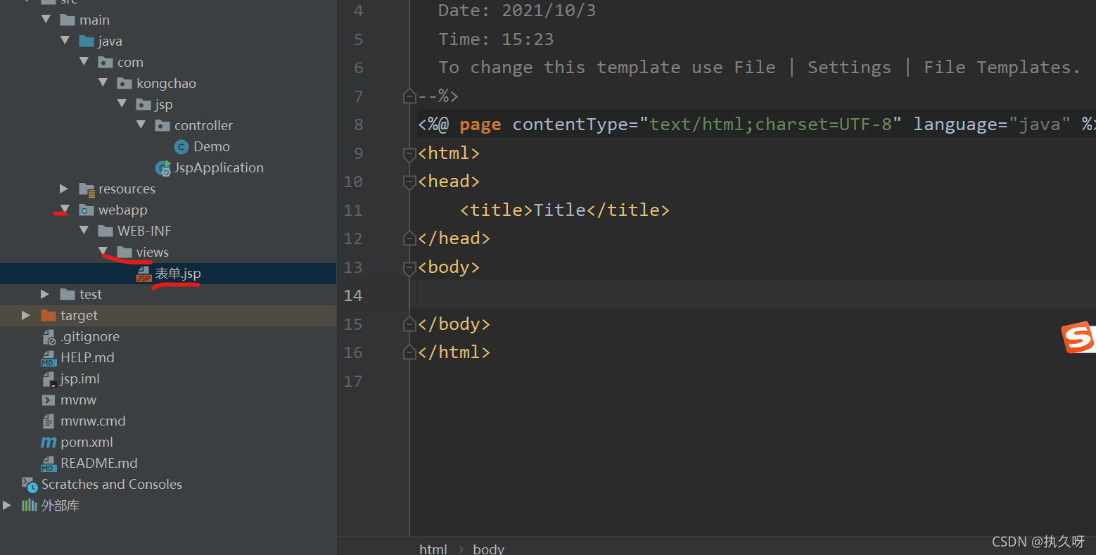 我们在创建好了之后这里会有jsp的空单子,我们在这输入的内容,会先反馈到前端,之后再进行