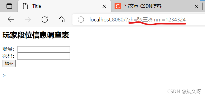 点击提交后,会在网页上显示出来,这时name的作用就体现出来了。
