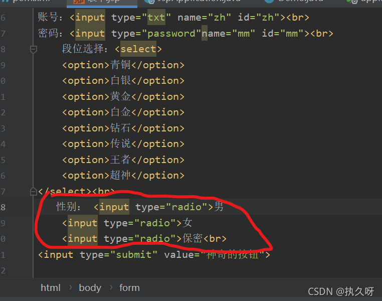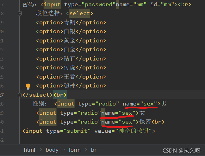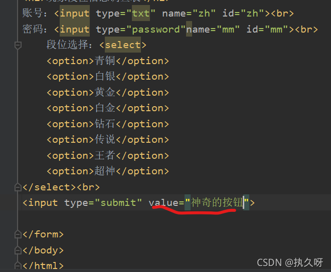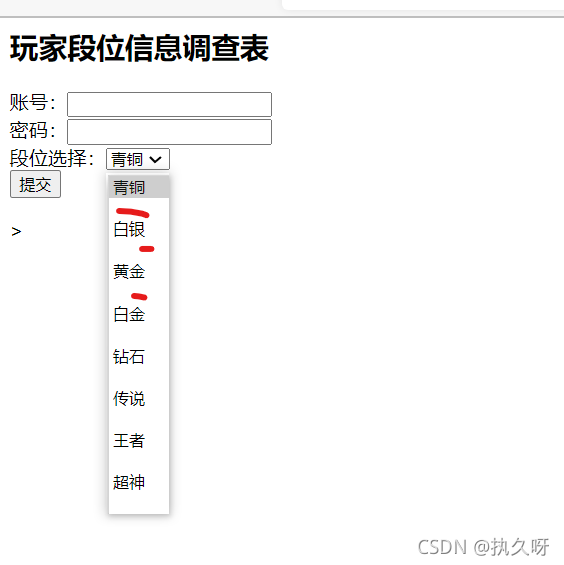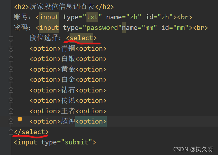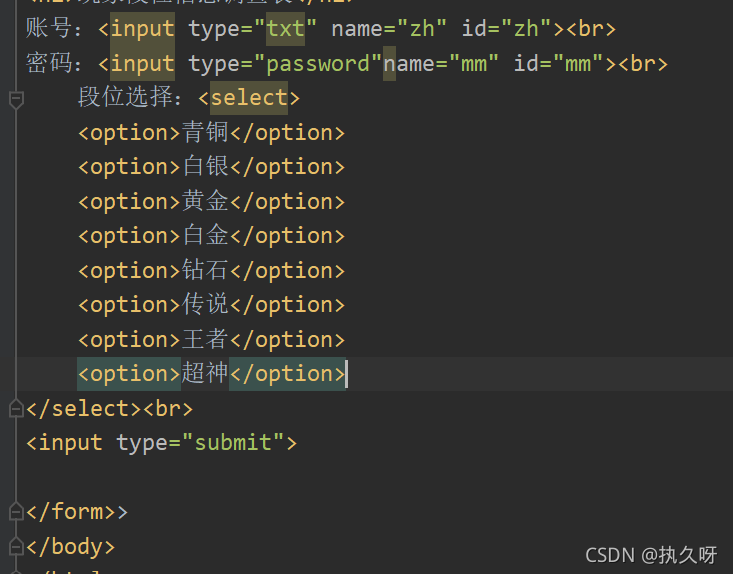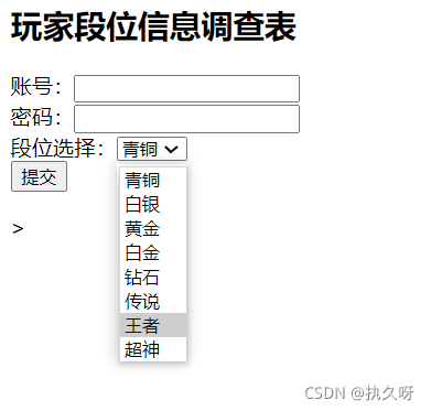 第四步:既然这是段位提交,那显然少不了段位选择,本来应该是<option>内容</option>
