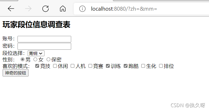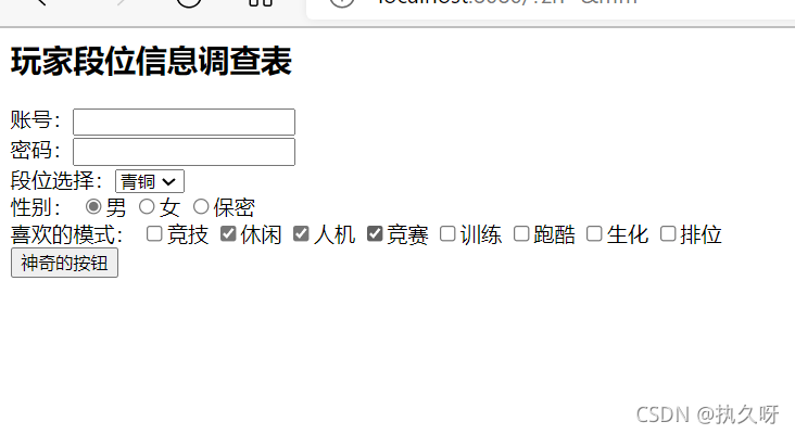 但是你会发现,点了提交没反应,这时我们就要加入<form></form>将整个包起来