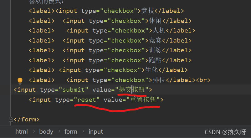 有时候我们写错太多,不想一个一个删除,这时我们就可以用一个重置按钮reset英文理解为