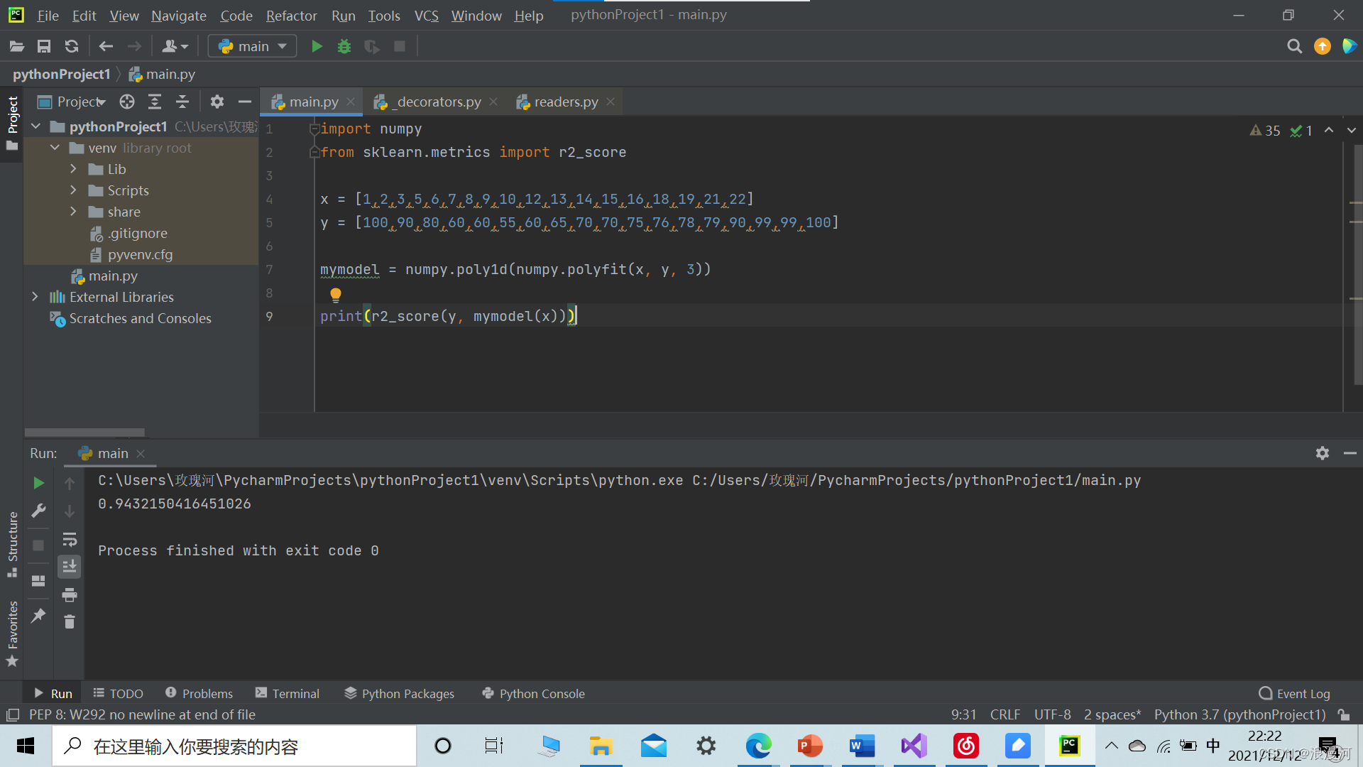 r=0.9432150416451026 拟合度很好