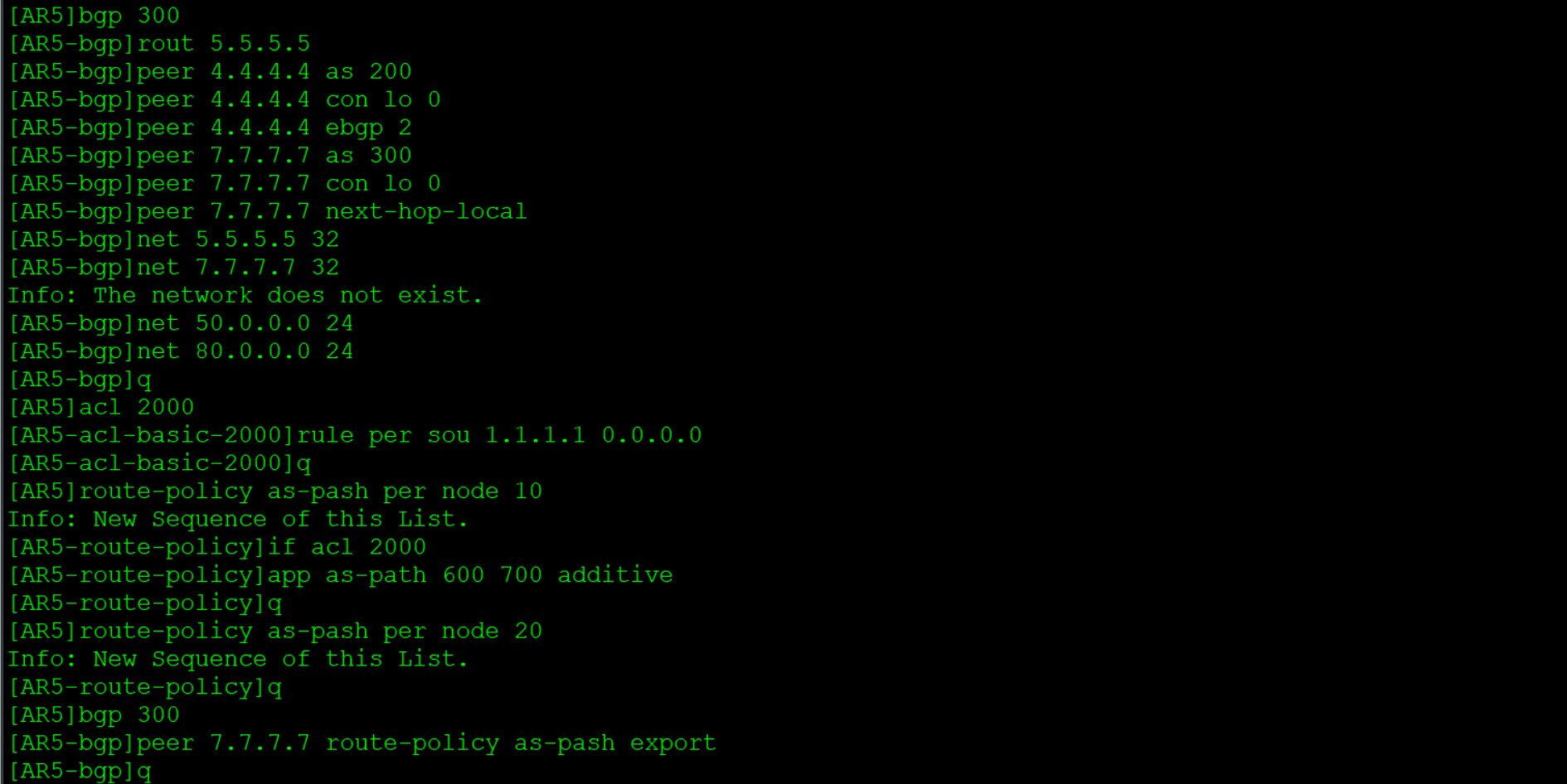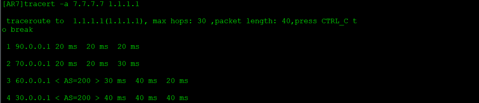 - Incomplete:优先级最低,通过其他方式学习到的路由信息,比如BGP通过import-route命令引入的路由,其Origin属性为Incomplete