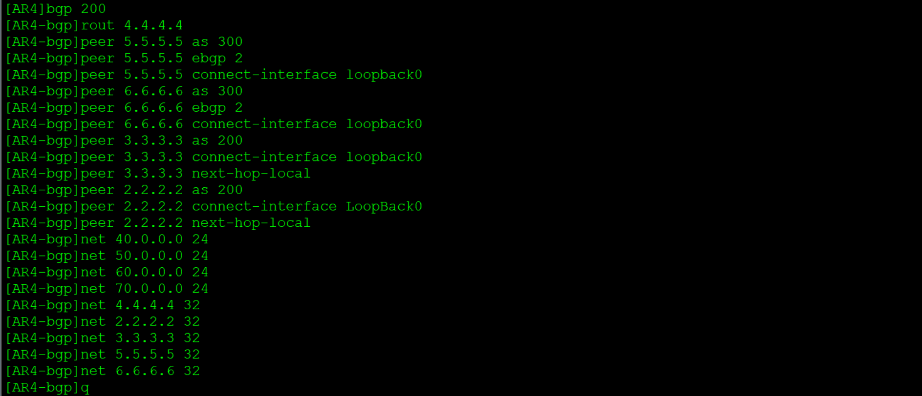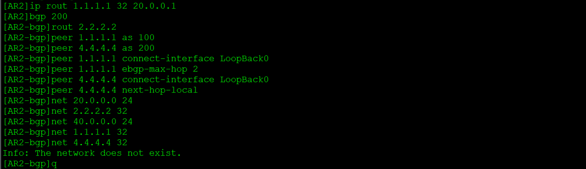 - BGP Speaker在向EBGP对等体发布某条路由时,会把该路由信息的下一跳属性设置为本地与对端建立BGP邻居关系的接口地址