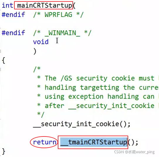 而__tmainCRTStartup函数又被mainCRTStartup函数调用