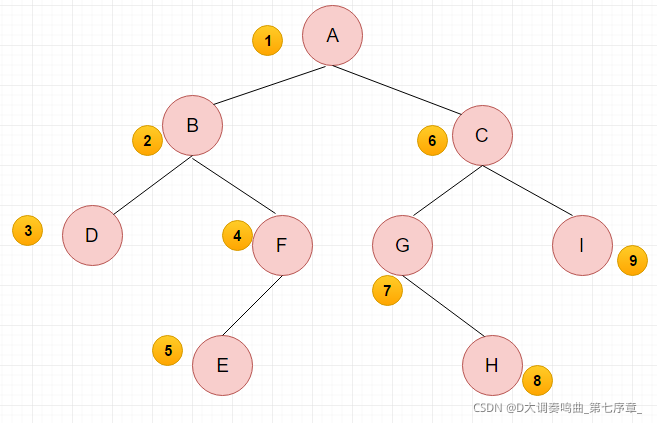 (4)访问F节点的时候有分支,同样遵循“先根节点-再左--再右”的顺序,