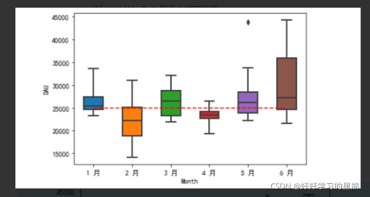 DAU的箱线图绘制,需要将每个月的DAU数据作为一个箱体的数据,图像说明如下:
