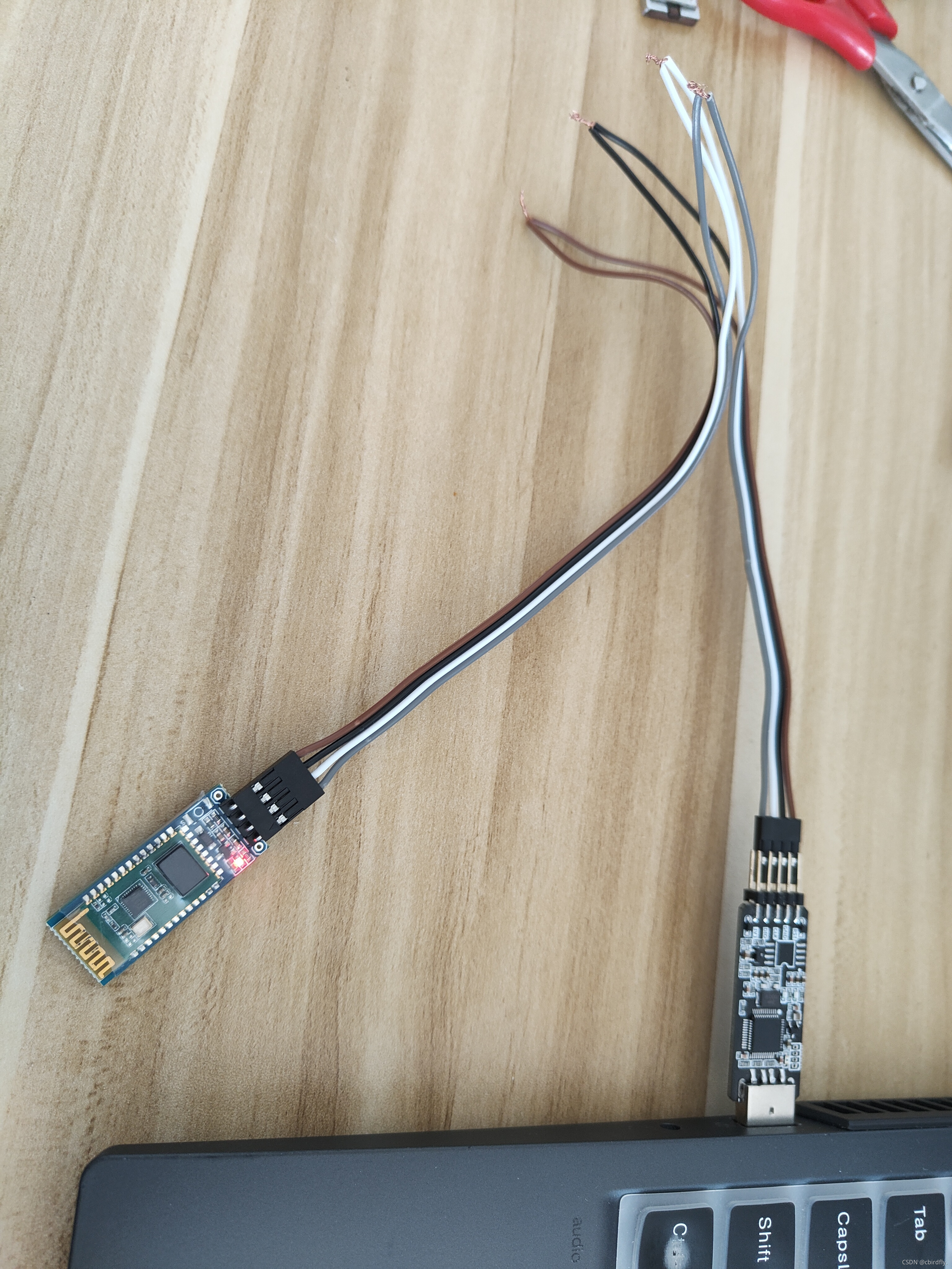 USB转TLL模块与蓝牙连接,并插在电脑上。