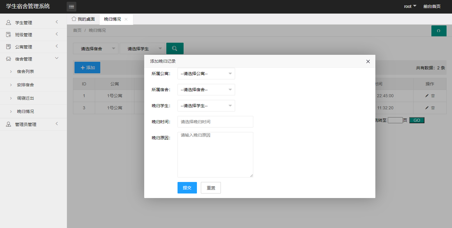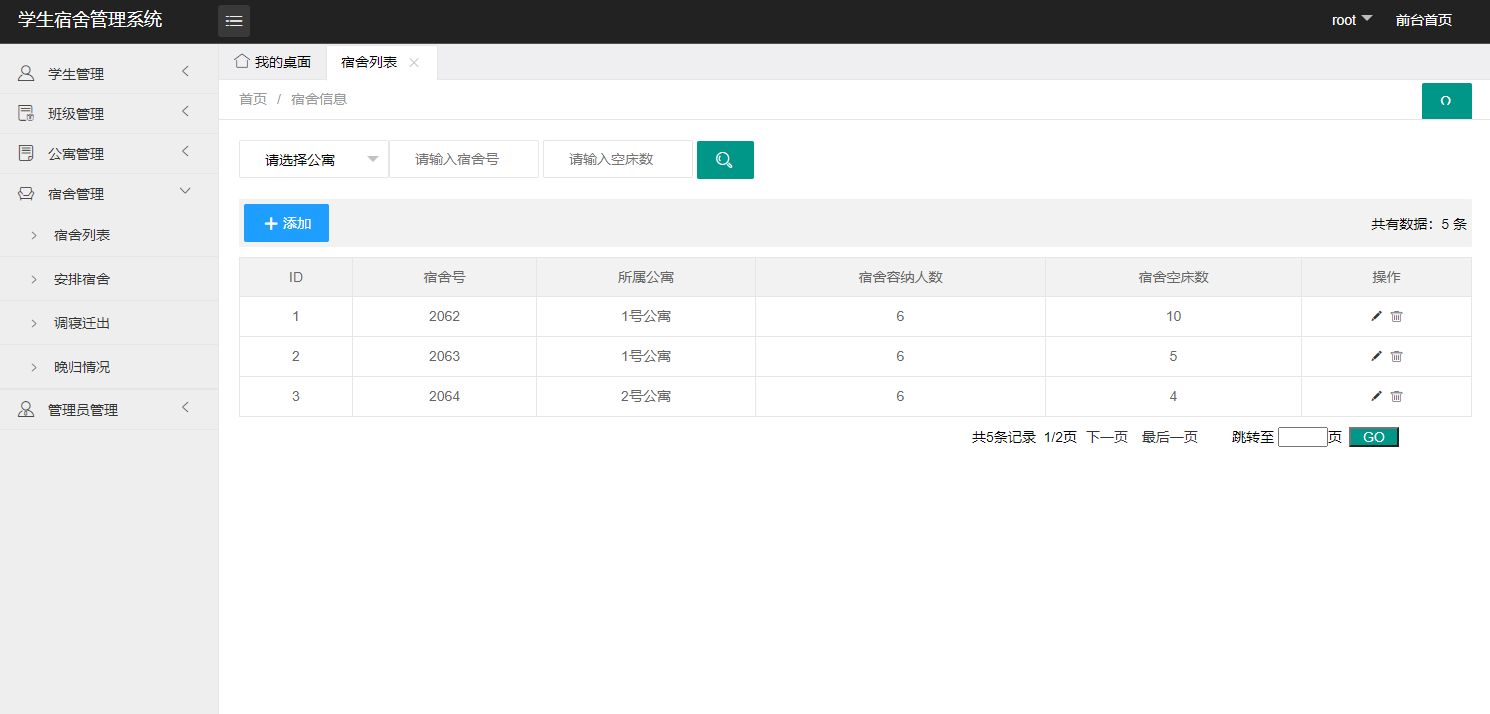 本系统采用SSM框架,数据层采用mybatis,数据库使用mysql,可以用作毕业设计、课程设计等,适合选题:高校宿舍、宿舍、员工宿舍等,下面是大概的功能,具体功能实现可以建议看下方的演示视频,系统适合于基础一般的同学使用。